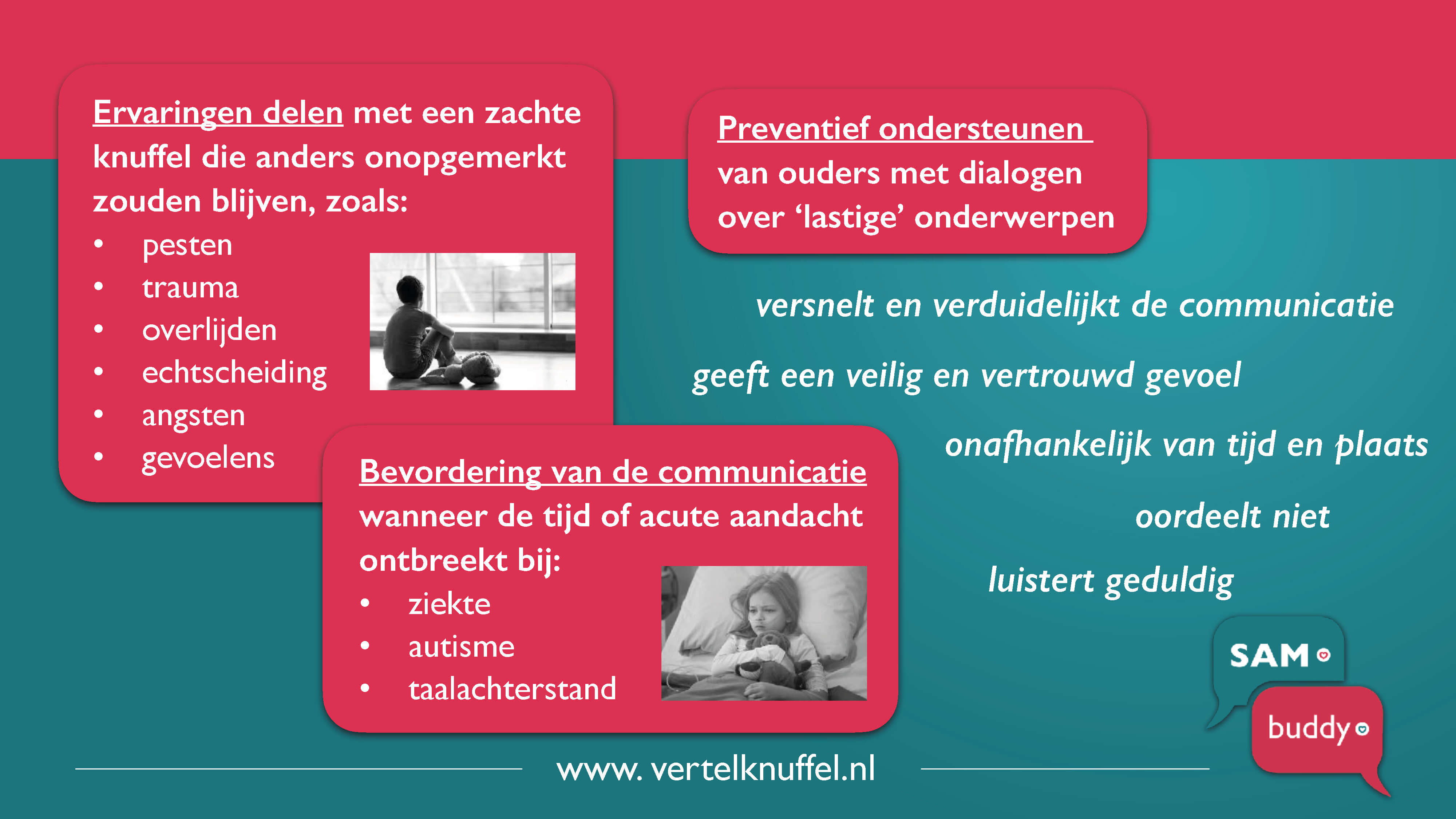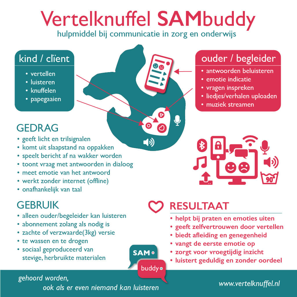 Hulpmiddel voor communicatie in zorg en onderwijs. Uitleg over gedrag, gebruik en resultaat van Vertelknuffel SAMbuddy.